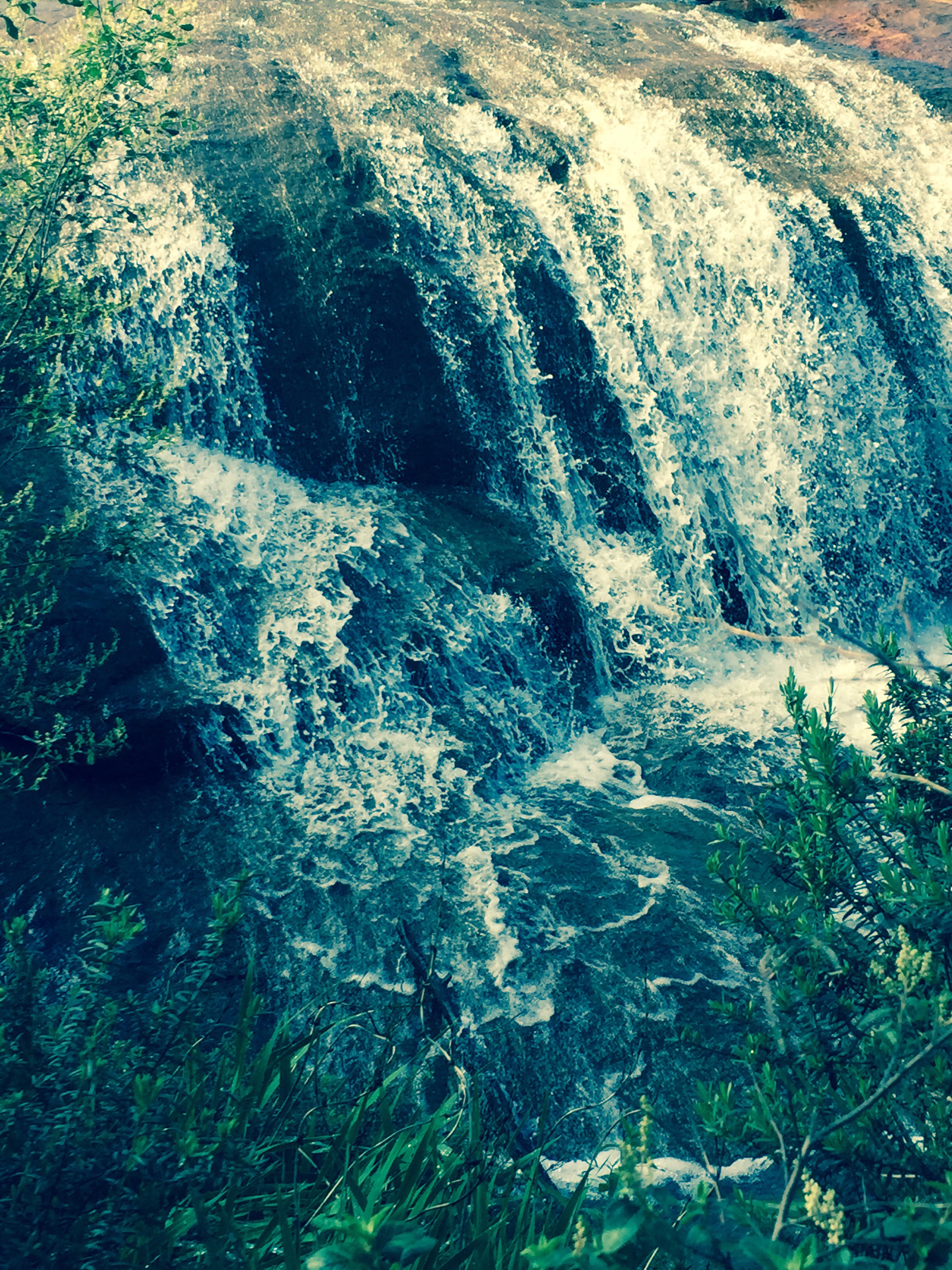 It had been raining overnight and in the early morning so the ground was slippery underfoot. Also the waters were cascading down the rocks.
