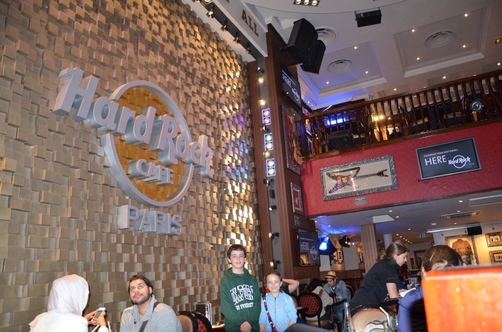 All aboard. The trip was really pleasurable. Mostly quiet. HeadiFrom the Left bank looking on to Notre Dame Cathedral. Notre-Dame Cathedral Starting our walking and skip the line tour to the Eiffel Tower. At the base of the Tower. From the top platform looking on to The Arc de Triumphe. Heading over to the Arc de Triumphe. From the Louvre looking up the Chan De Lisa to the Arc de Triomphe. The great courtyard with the Pyramid in the background. The guide was particularly for James and Jorja she was American living in Paris and she made the museum tour fantastic. It was just the four of us. Our guide managed to get everyone out of the way to let Jorja and James get right in front of the Mona Lisa. Linda looked forward to seeing Venus de Milo. Socrates passed on his knowledge to Plato who passed it on to Aristotle then to me. I know what your thinking and it would be rude to say that out loud. The inverted Pyramid. Linda used some magic here to make the Pyramid float. Inside the pyramid!s shell. Another Hard Rock Cafe. Ooo La LaVery Parisian My tower. Heading to a night time river cruise. It got very cold on the river but we had great views. Spectacular.