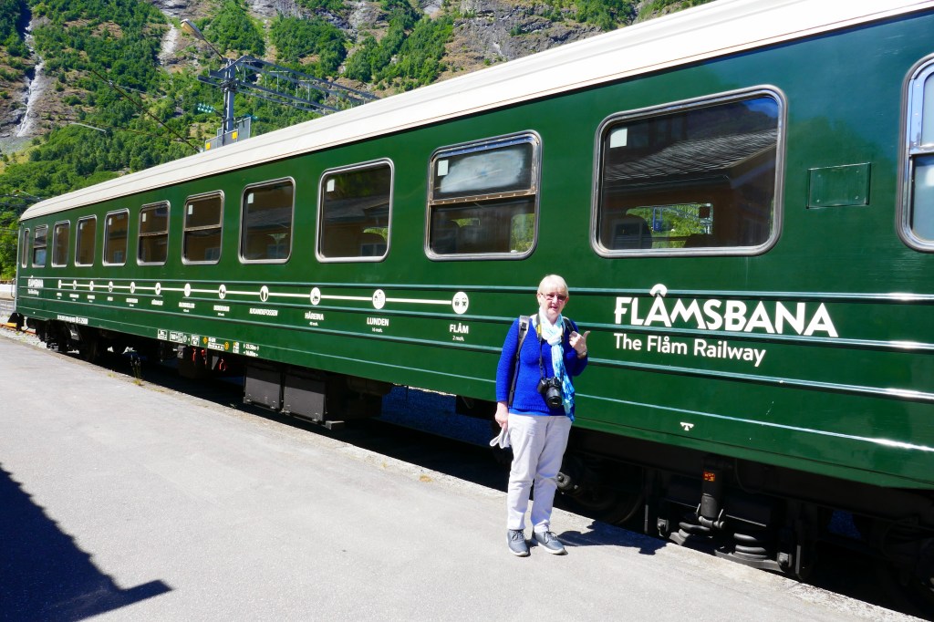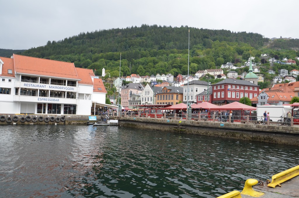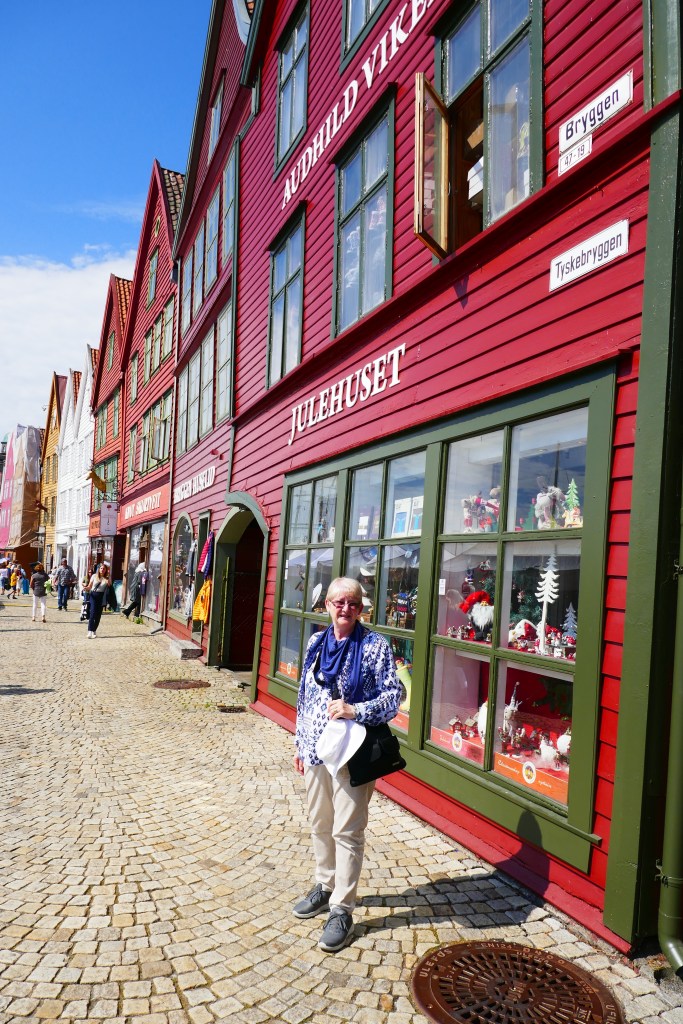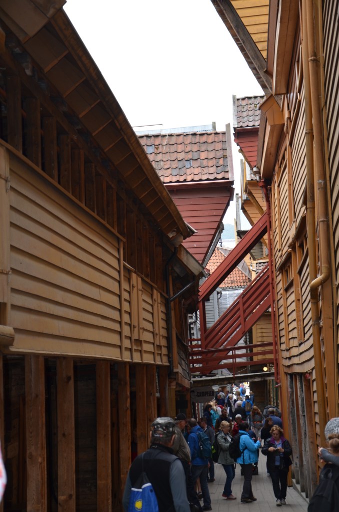 Our hotel looks on to the harbour here in BerginLooking across the small but lovely harbour.This is is Bergen Fest when the harbour is party town. On many of the boats there was ive music, dancing and a lot of drinking. Most if not all of the Whitw shirts and Black caps were well and trully drunk by the end of the night. I suspect there were many sore heades in the morning. We walked around the old wearhouse sector and Linda had found the resistance museum.A great day to be sailing on the fjords. Looking forward to our trip on the famous Flam train.Linda was telling me to get back on to the train as it was about to leave.