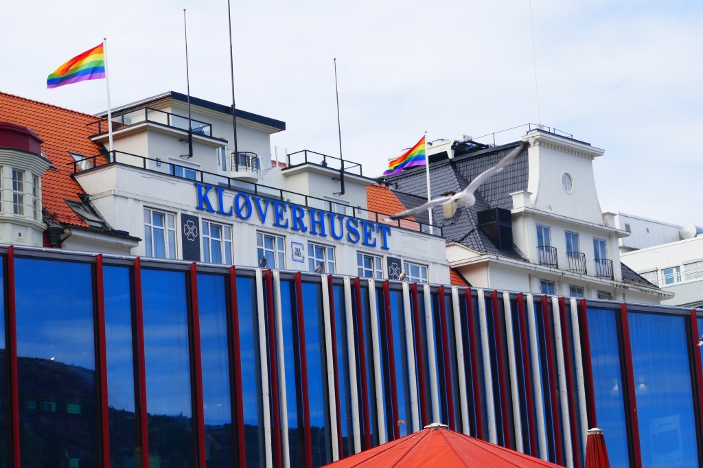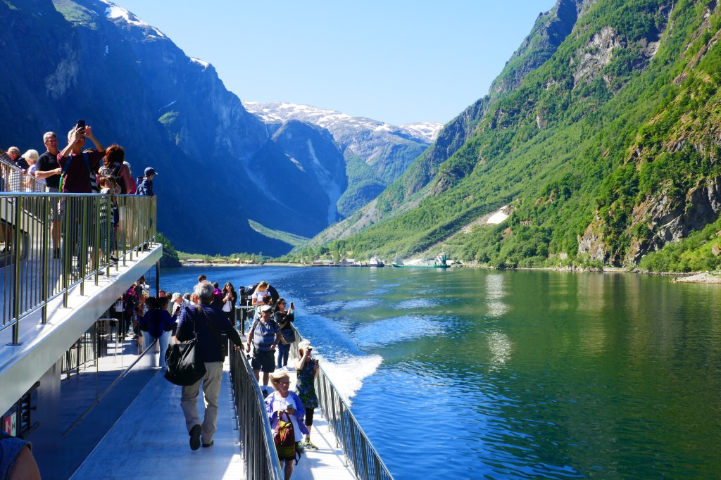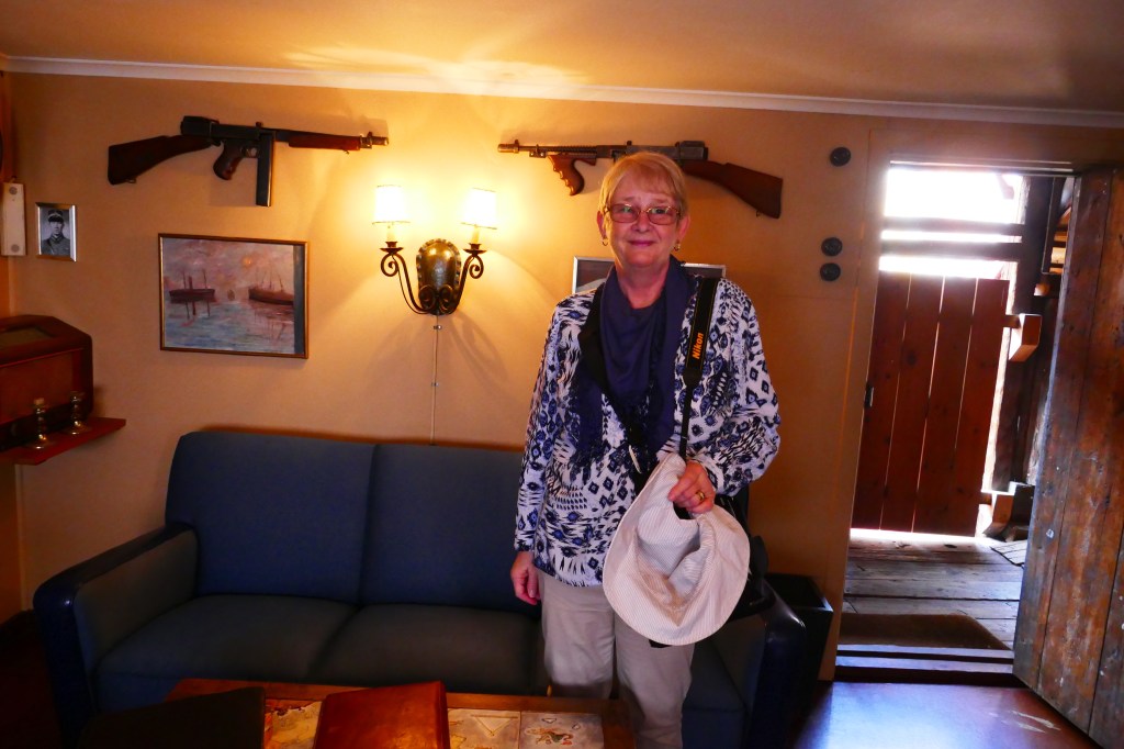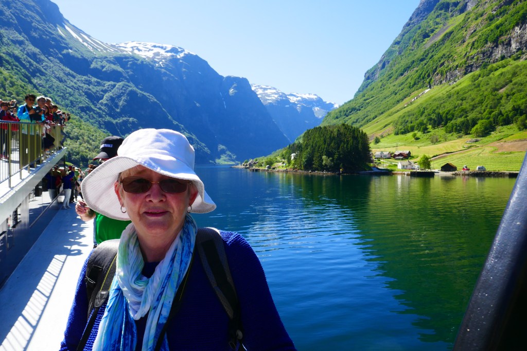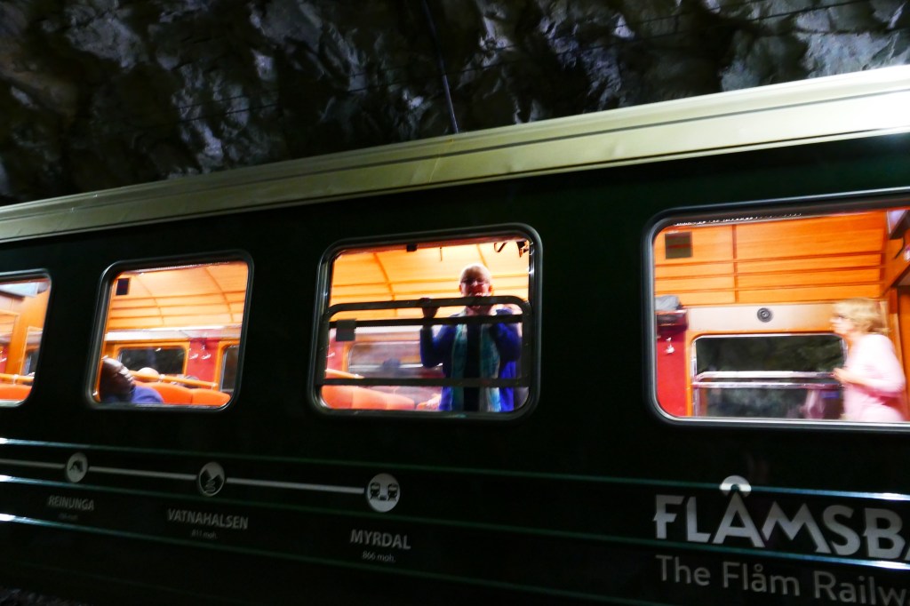 Our hotel looks on to the harbour here in BerginLooking across the small but lovely harbour.This is is Bergen Fest when the harbour is party town. On many of the boats there was ive music, dancing and a lot of drinking. Most if not all of the Whitw shirts and Black caps were well and trully drunk by the end of the night. I suspect there were many sore heades in the morning. We walked around the old wearhouse sector and Linda had found the resistance museum.A great day to be sailing on the fjords. Looking forward to our trip on the famous Flam train.Linda was telling me to get back on to the train as it was about to leave.