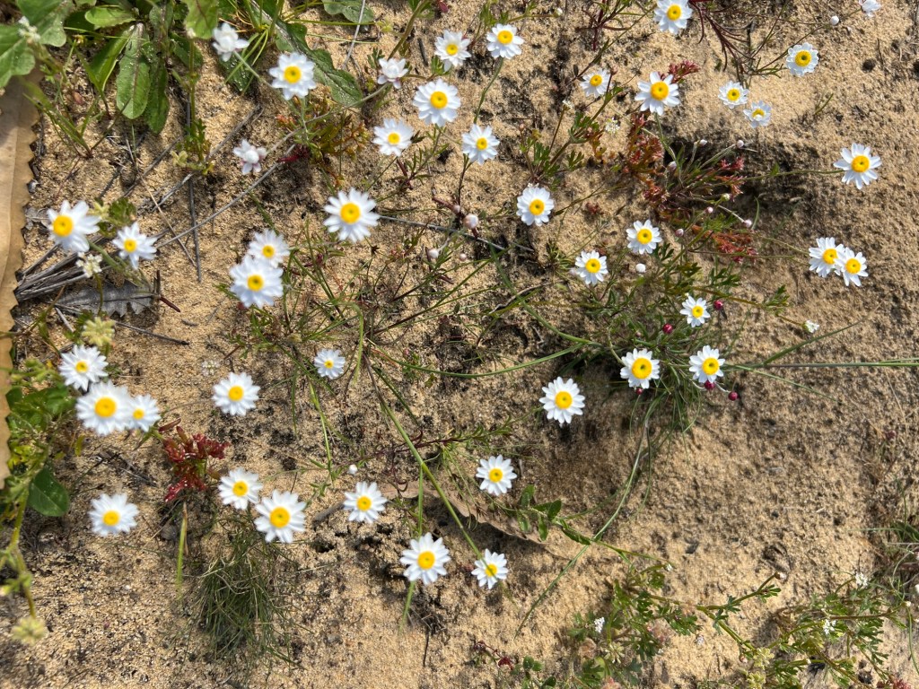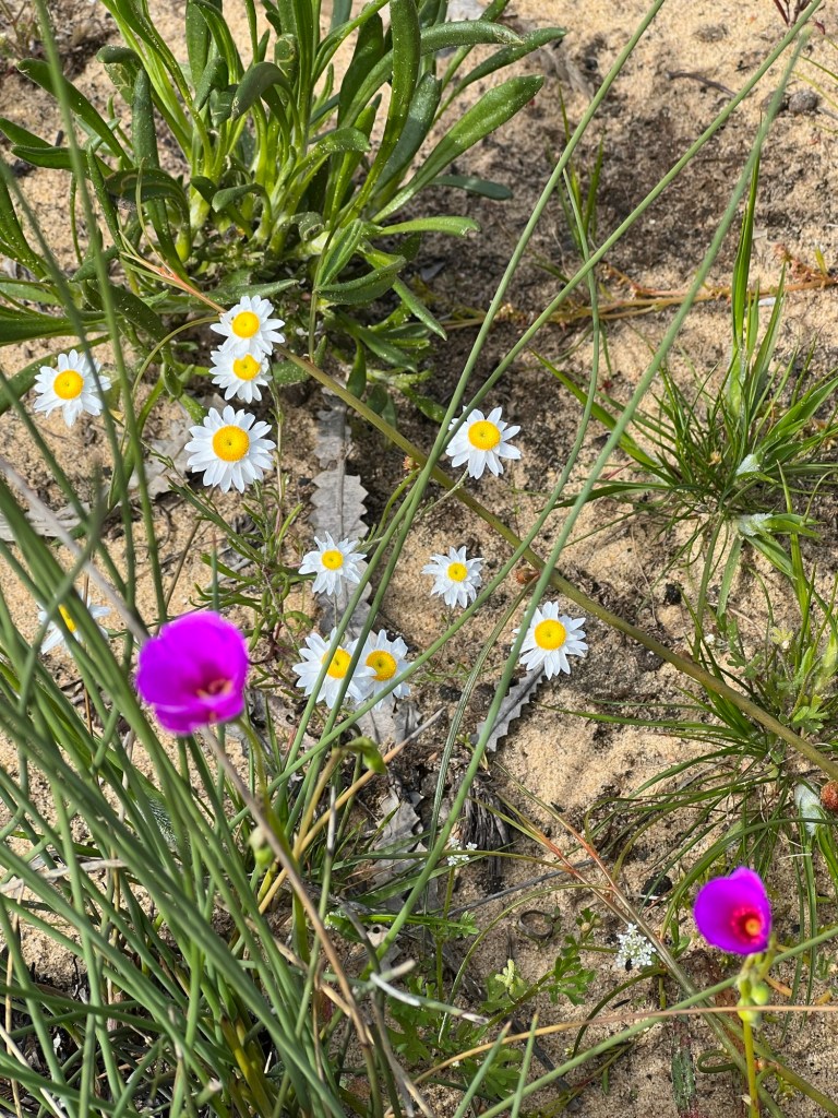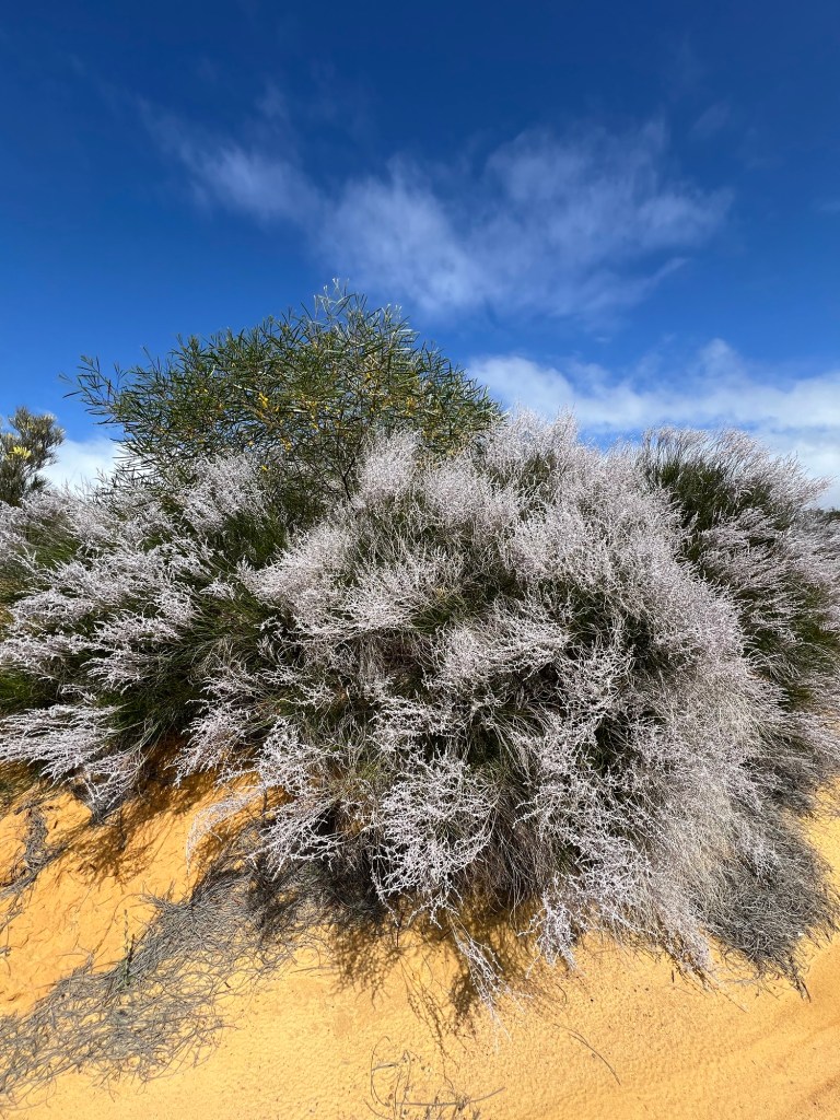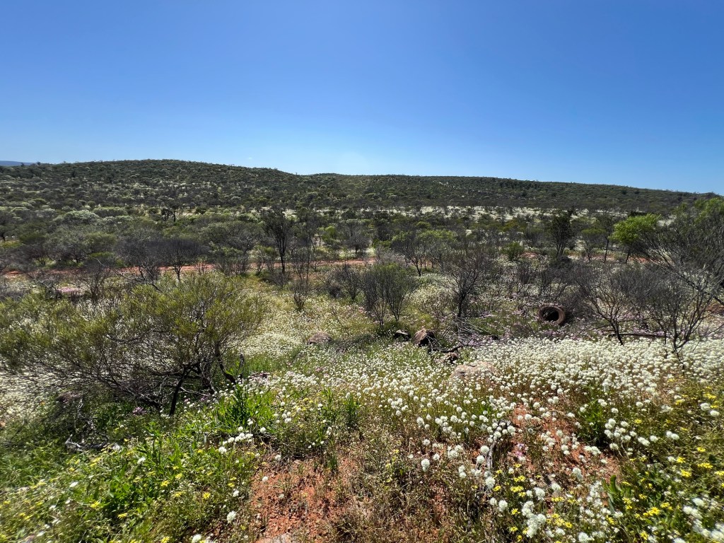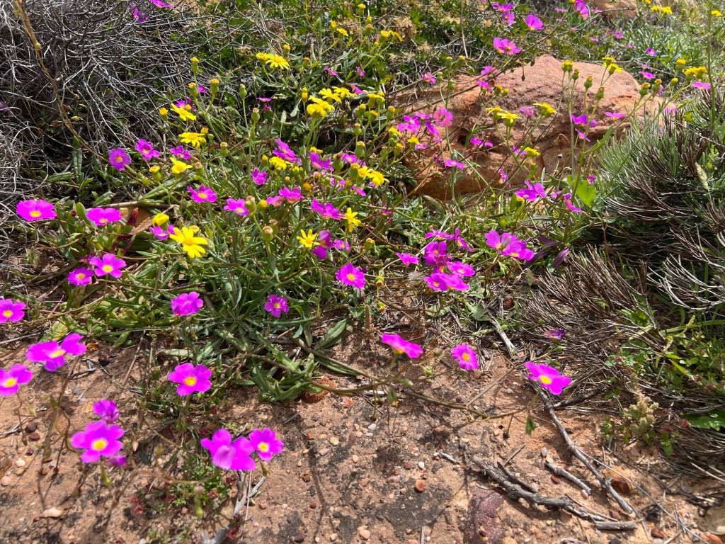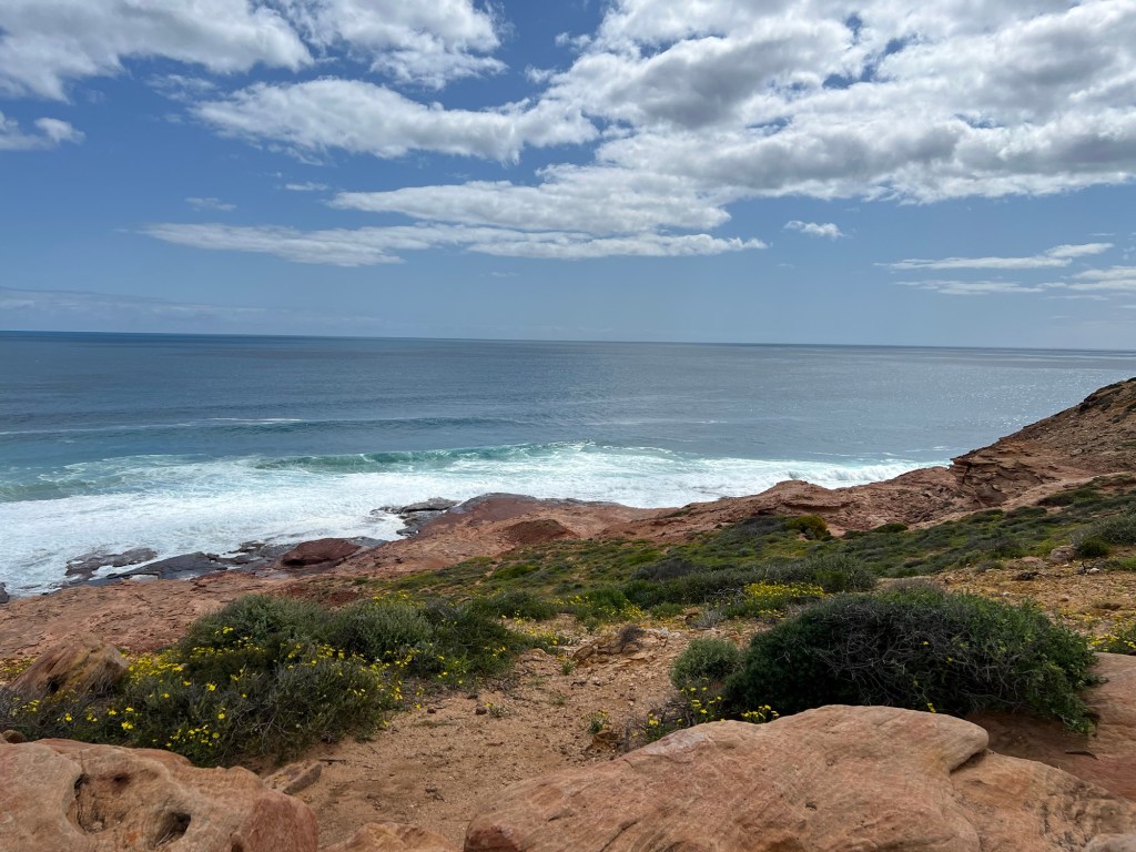 Took off for a 6 day drive from home (WAIKIKI WA) to Kalbarri stopping off at Cevanties for 1 night then on to Jurien Bay, Lesueur National Park, Eneabba, Three Springs, Mingenew, Coalseam Conservation Park, Mullewa to Geraldton. Stayed one night there. Next day we drove to Kalbarri for 3 nights, travelling up the coast road. We had intended returning to Geraldton on the Saturday but decided to drive home from Kalbarri, a 7 and1/2 hour drive. Many of the wildflower pictures were taken during our driving from place to place.